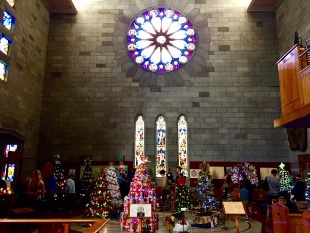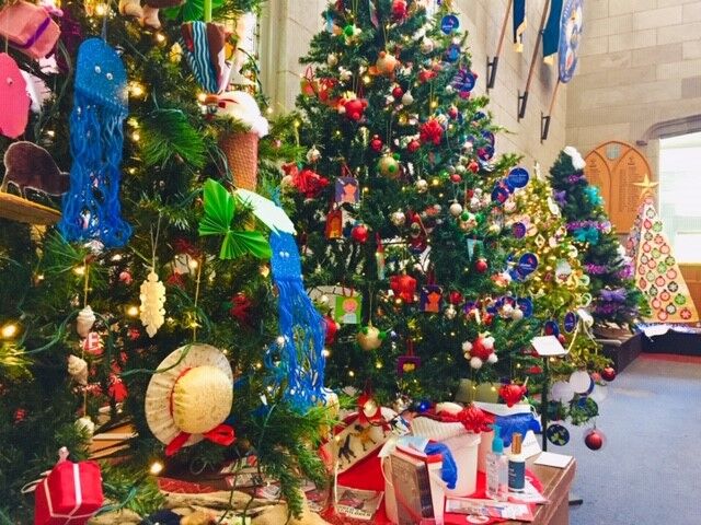 今年は61ものクリスマスツリーが教会の中に並べられています!多いですよね!これらのツリーは、ネルソンにある学校や地元のコミュニティー団体によって飾り付けられているそうですよ。